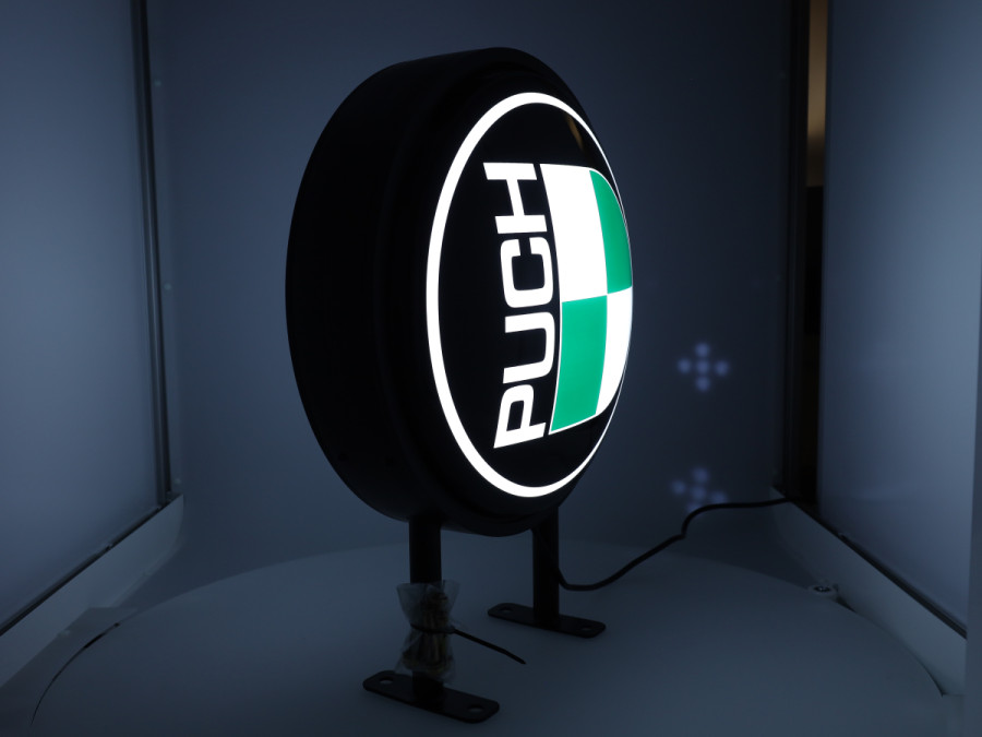 Dieses exklusive PUCH LED-Schild ist das Highlight für jede Garage oder Werkstatt! Mit dem klassischen grünen und weißen PUCH-Logo und heller LED-Beleuchtung bringst du echten Retro-Charme in deinen Raum.