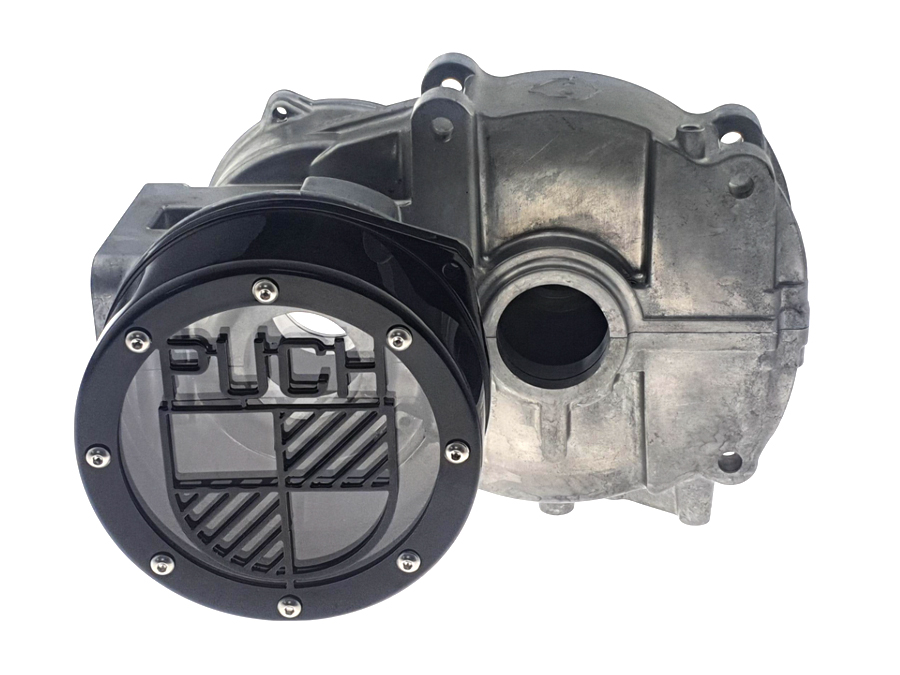 - Mit gelasertem Puch-Logo und Polycarbonat-Fenster