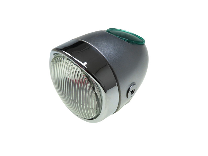 Scheinwerfer Eierlampe 102mm Komplett Silbergrau Nachbau
