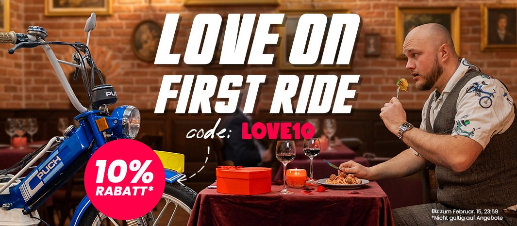Feiere die Liebe auf zwei Rädern mit unserer Valentinstagsaktion im Puch Moped-Shop! Erhalte jetzt 10% Rabatt auf deine liebsten Puch Ersatzteile und Accessoires mit dem Code LOVE10. Schenke deiner Puch (oder deinem Valentin) etwas extra Liebe und sichere dir dein Angebot, bevor die Aktion endet!