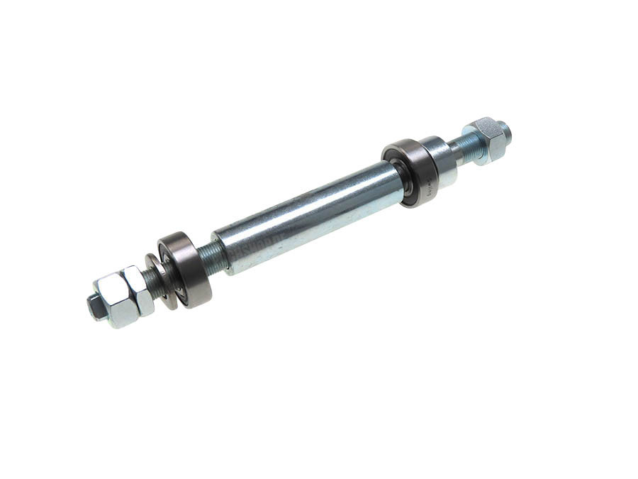 - The set consists of a 190 mm long wheel axle, two special ball bearings, one half height and two high M12x1 nuts and various distance bushings