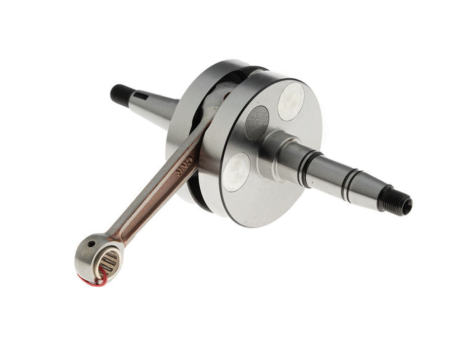 - High-quality and precisely fitting, 990g heavy full crankshaft, which has proven itself in a variety of stress tests. Designed for use in high power engines. All balancing holes in the cheeks were closed with aluminum inserts for maximum pre-compaction. The massive connecting rod is provided with a Ø16 mm connecting rod. In addition, the conrod bearings are silver bearings, which have excellent emergency running properties.