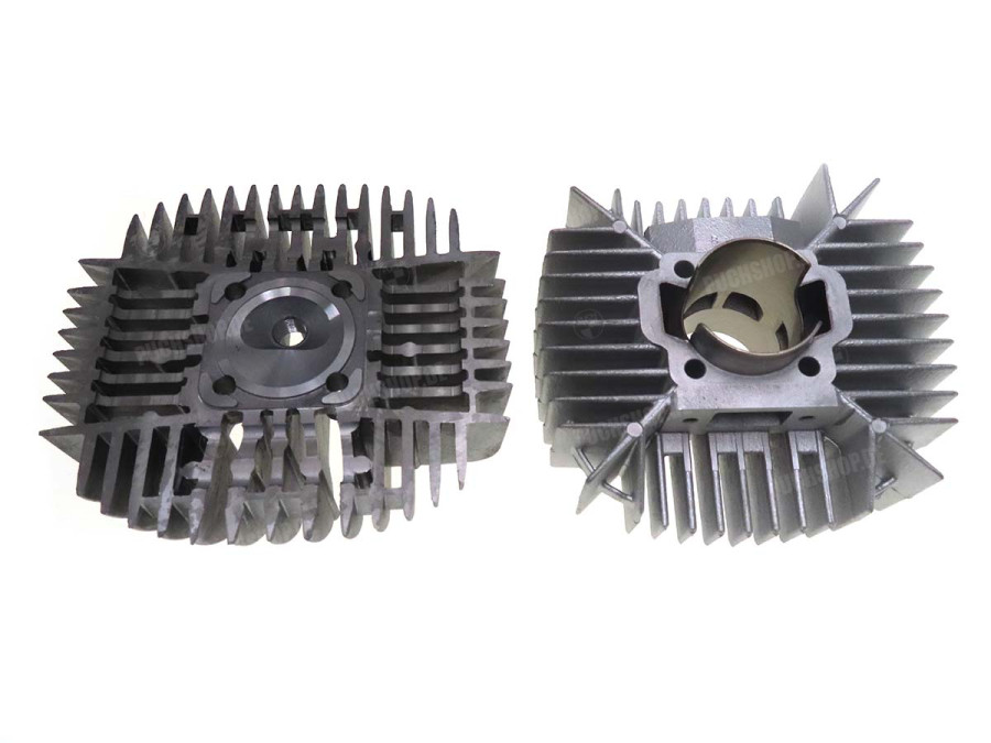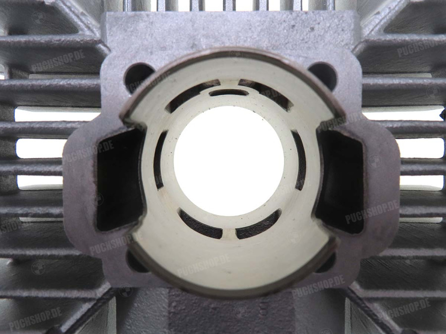This cylinder of the Italian top brand Parmakit delivers the highest performance and is absolutely one of the fastest cylinders for sale for Puch! Parmakit has equipped this cylinder with a double exhaust port, so the exhaust gases can leave the cylinder faster and a higher RPM can be achieved. Also the cylinder head is well taken care of, an extra small combustion chamber gives a higher compression and the larger cooling fins give a better cooling. The set comes standard with gaskets, matching cylinder head, piston, piston pin and piston rings.