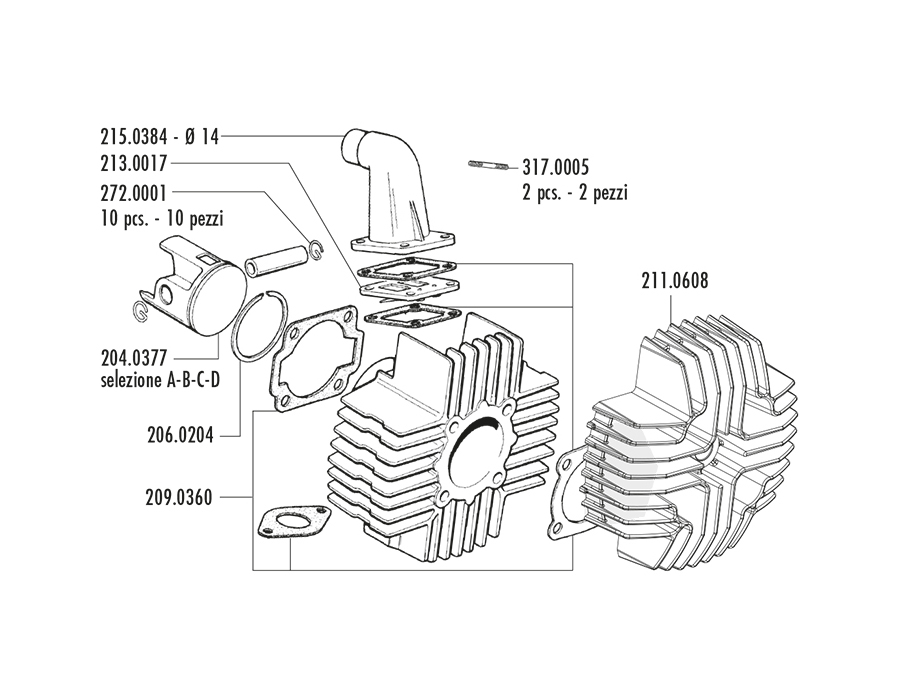 This cylinder head is a Polini design and was specially designed for the Polini 43.5 mm 65 cc cylinder.