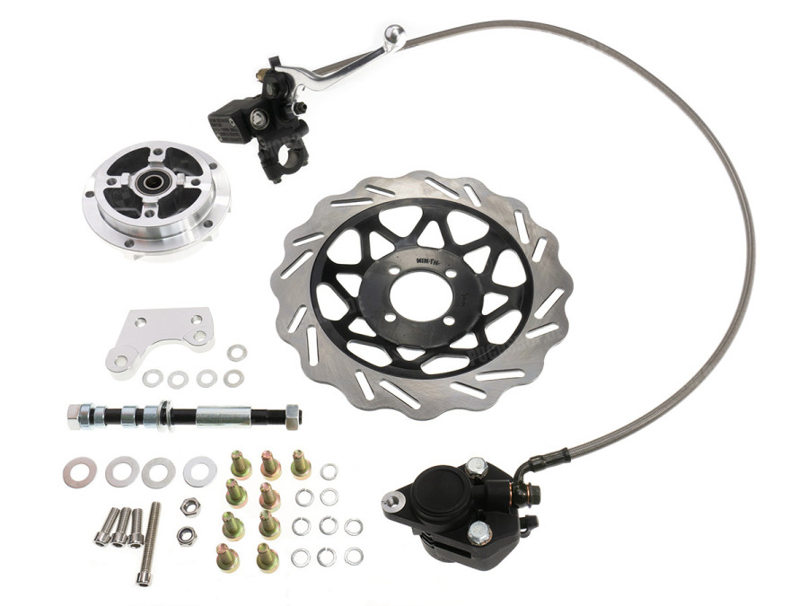 The Fast Arrow disc brake kit for Puch Maxi comes delivered as a comprehensive package, thoughtfully assembled to meet all your needs. The set includes:
