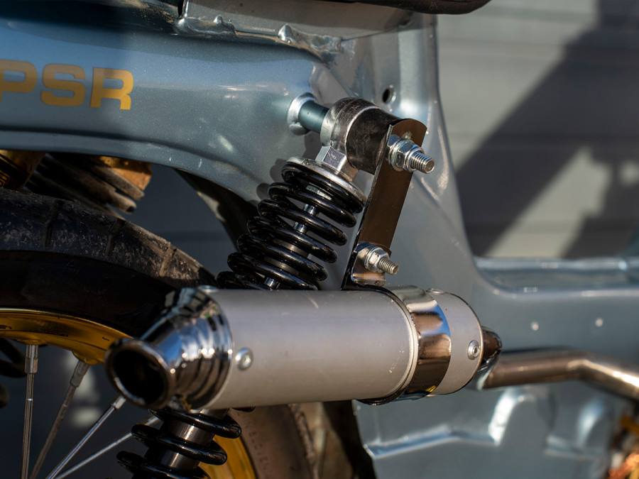 - The exhaust is supplied with a mounting bracket and silent rubber; the silent rubber is mounted on the shock absorber mounting bolt