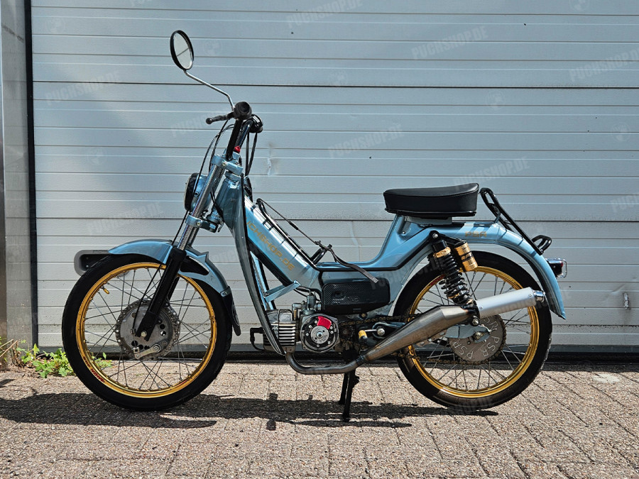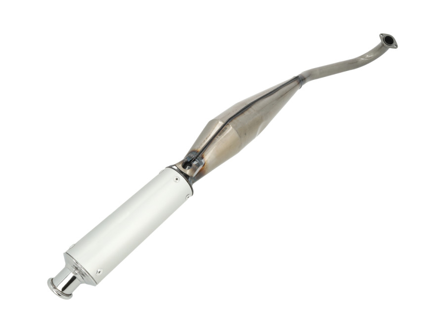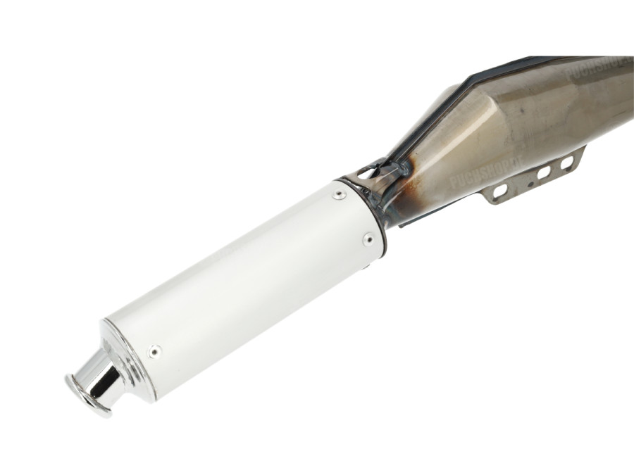 Do you want to tune your Puch moped with a nice exhaust for more power? Then a Bullet Exhaust might be the best choice for you! With their calculated exhausts for optimal power, you can get more horsepower out of your puch moped. From original replica exhausts, cigar style exhausts or ones with expansion chambers inside of them. Bullet also has a variety of race exhausts for Puch with different sizes of manifolds as well as big resonance expansion chambers with end silencers at a tailpipe. Be sure to check them all out on Puchshop.de