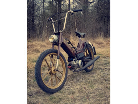Homoet, the handmade performance exhaust made in... You guessed it: Netherlands! These exhausts are specially tuned for Puch cylinders and give a very nice power curve and top speed.