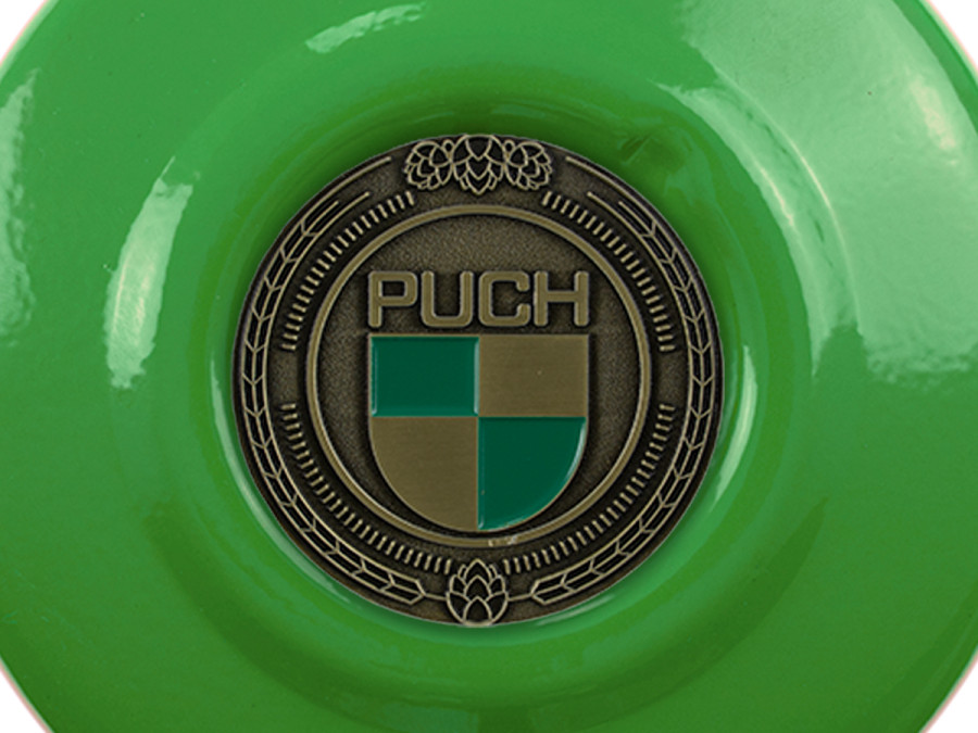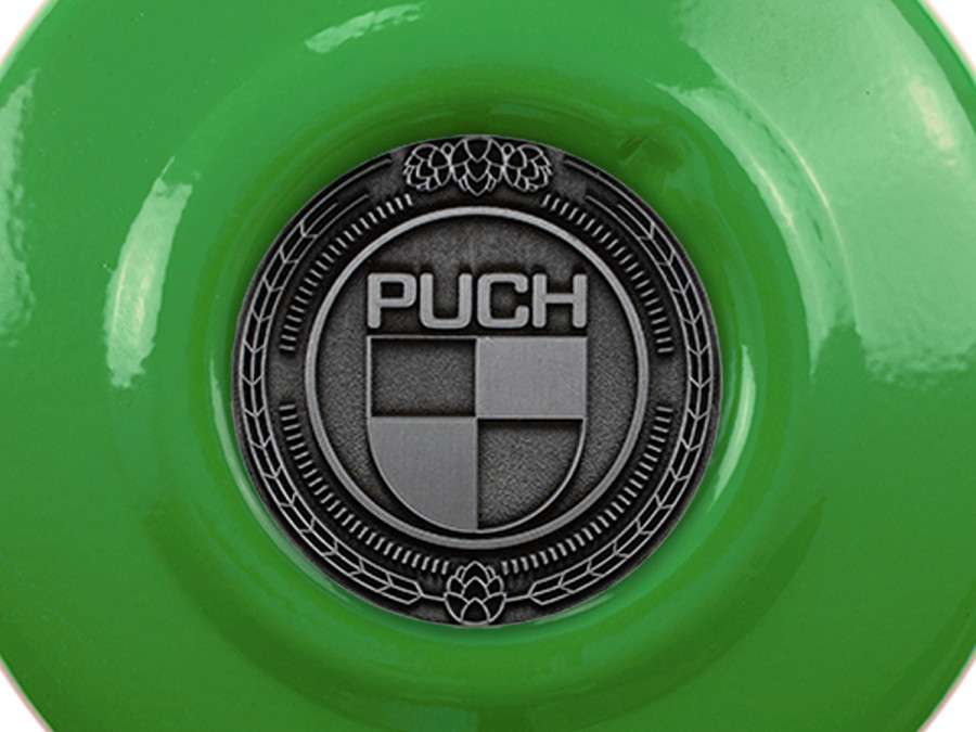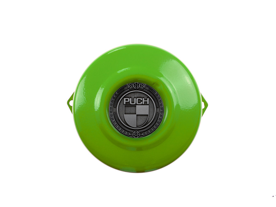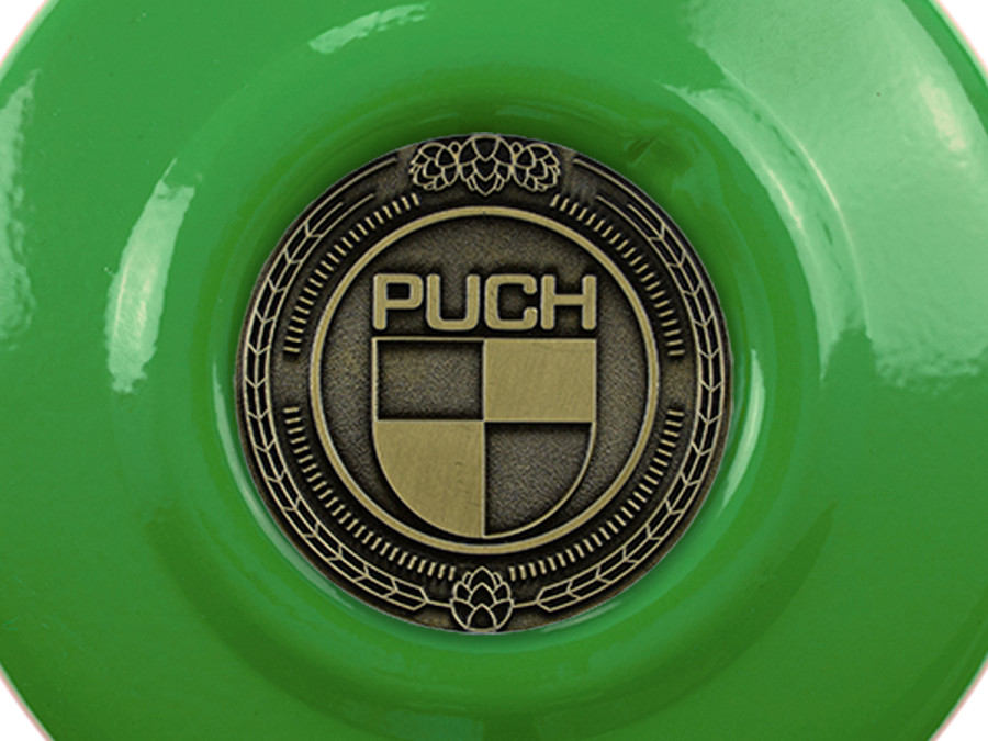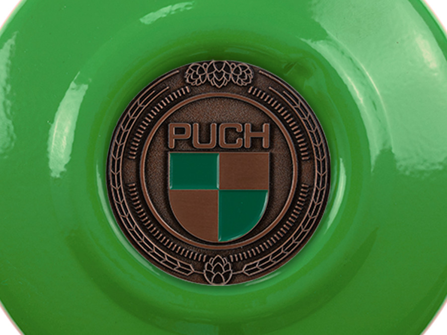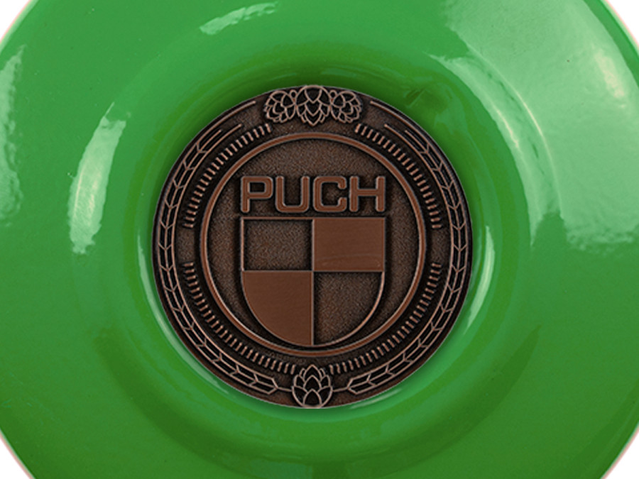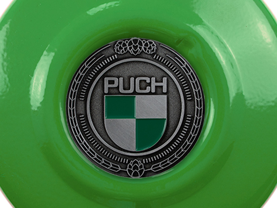 Metal stickers on your Puch Moped? RealMetal is a brand of Puchshop.de from the Netherlands that produces high-quality metal products for the moped culture. Puch Maxi sticker or stickerset can be replaced for RealMetal Puch Stickers. Gastank sticker, puch emblems, 2stroke stickers, Puch Logo stickers, Puch race stickers or even complete flywheelcovers in color with RealMetal sticker Puch emblem of your choice! The products of the RealMetal brand are exclusive metal products such as emblems, decals and key chains made of high-quality metals such as brass, copper and pewter.