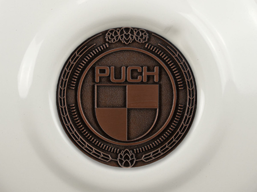 Metal stickers on your Puch Moped? RealMetal is a brand of Puchshop.de from the Netherlands that produces high-quality metal products for the moped culture. Puch Maxi sticker or stickerset can be replaced for RealMetal Puch Stickers. Gastank sticker, puch emblems, 2stroke stickers, Puch Logo stickers, Puch race stickers or even complete flywheelcovers in color with RealMetal sticker Puch emblem of your choice! The products of the RealMetal brand are exclusive metal products such as emblems, decals and key chains made of high-quality metals such as brass, copper and pewter.
