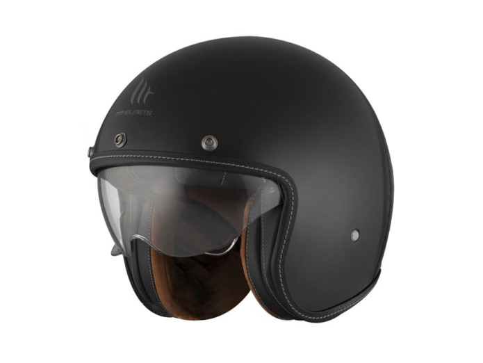 This classic retro jet helmet LE MANS II SV S is available in 3 colours: white, gloss black and matt black. The helmet has an integrated sun visor and very nice and high-quality inner lining and is available from XS to XXL. These helmets can also be expanded with a separate helmet visor, leather strip on top and matching custom glasses.