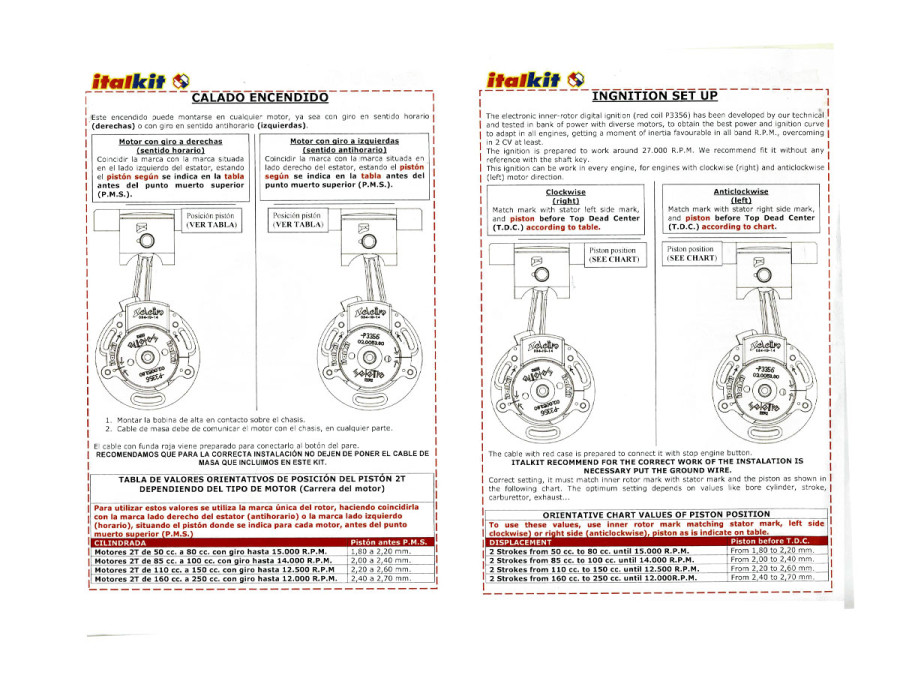 • The electronic inner rotor digital ignition has been developed by the technicians at Italkit in different engines, to obtain the best power and ignition curve to adapt in all engines.