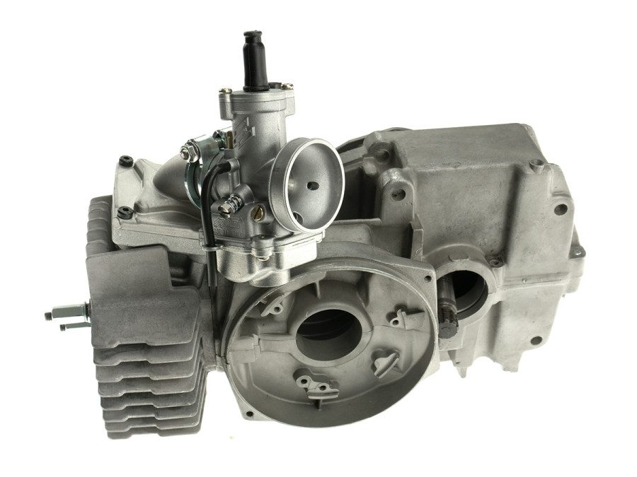 This kit is specially designed for the Polini 65cc on Puch maxi. The carburettor can be mounted sideways without modifying the cylinder or removing cooling fins.