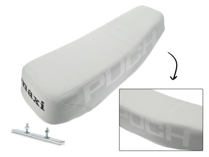 Buddyseat Puch Maxi S custom met gestanst logo wit