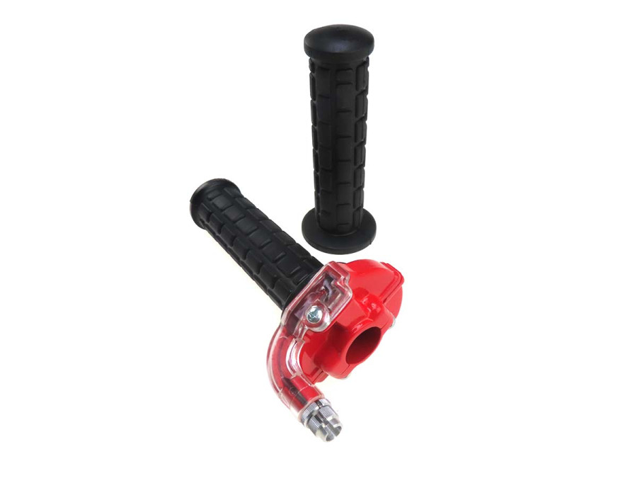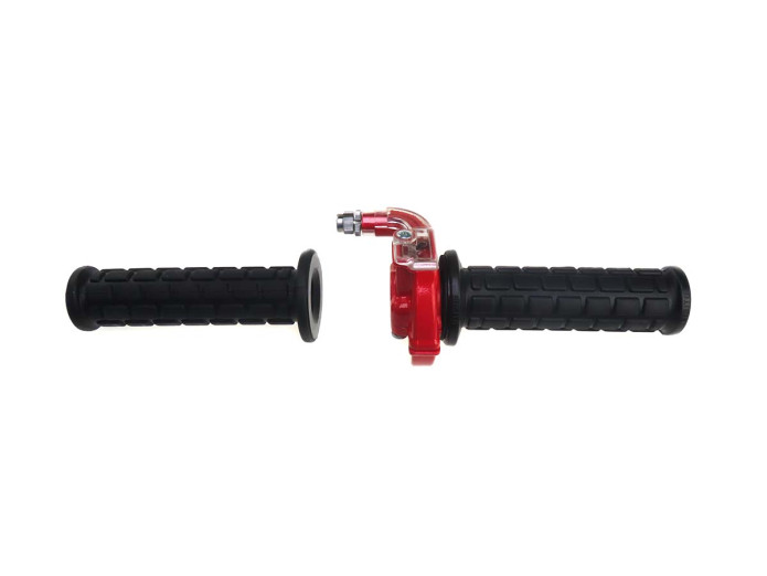 Greepset rechts snelgas gashendel Lusito M84 zwart / rood met transparant
