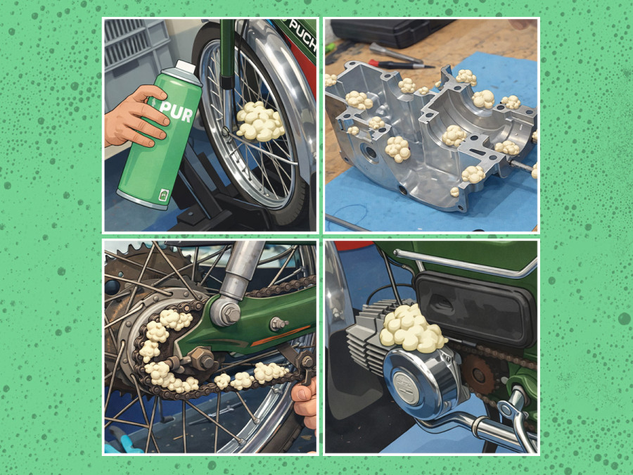 Wat begon als een experiment groeide al snel uit tot dé oplossing voor alles wat mis kan gaan aan jouw brommer. Dankzij een unieke samenstelling vormt Mo-Po Foam een semi-rigide, gesloten schuimstructuur met permanente hechting. Of het nu gaat om een droge ketting, valse lucht of een lekkende pakking, één spray en jij hebt het probleem opgelost. Of in ieder geval anders.