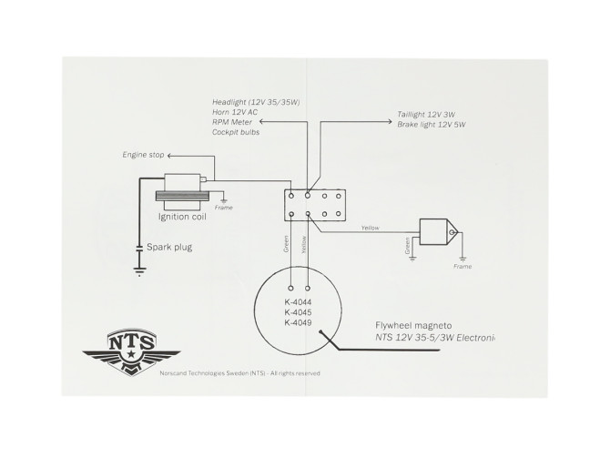 Ontsteking model Bosch linksdraaiend 12V 43W elektronisch CDI met vliegwiel en spanningsregelaar NTS