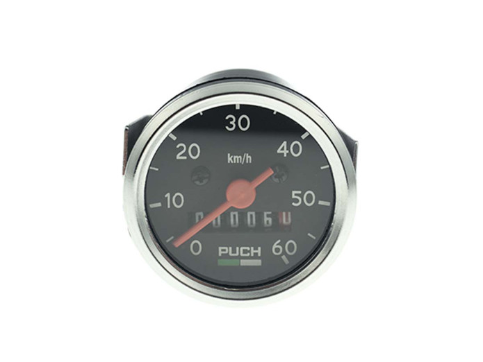 Teller kilometer 48mm 60km/h VDO replica zwart met Puch logo