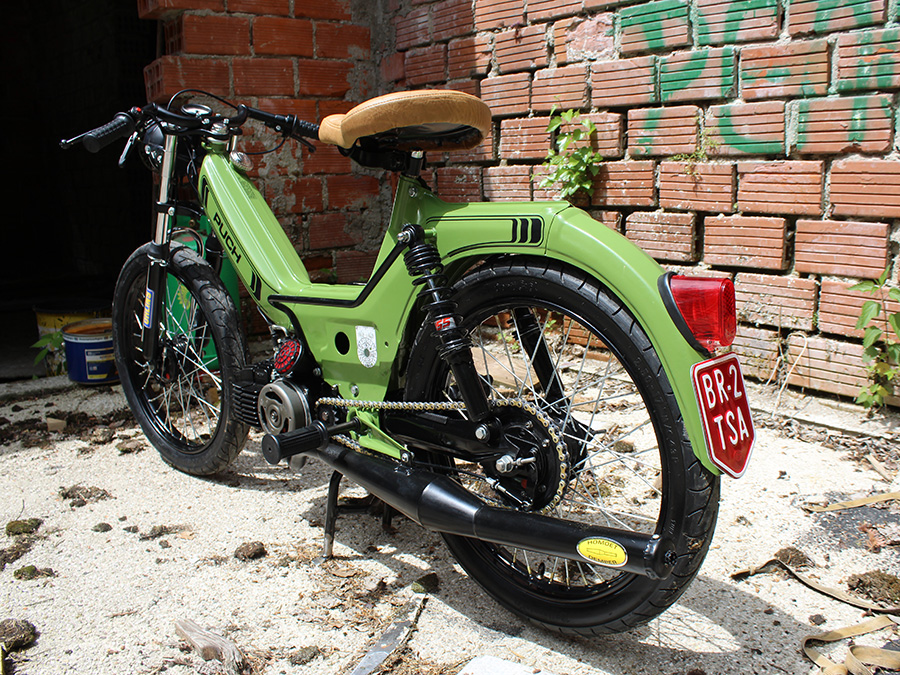 My name is Marcel, 21 years old coming from Austria. In 2018 I bought this Puch Maxi LG (1986) from a good friend of me. One day I had an illusion to build a caferracer. The transformation from the bottom to now you can see in the pics bellow.