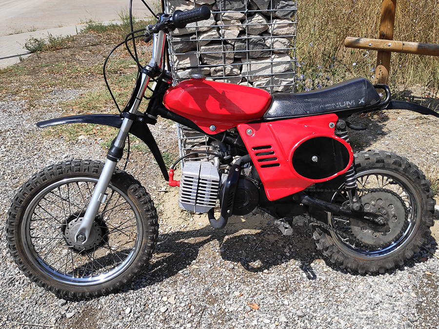 Red painted stock plastic bodywork . Stock plastic fenders. Stock tires in medium use. Big rear sprocket. (i have the stock rear sprocket). Original seat. Stock exhaust. RUNS GREAT.