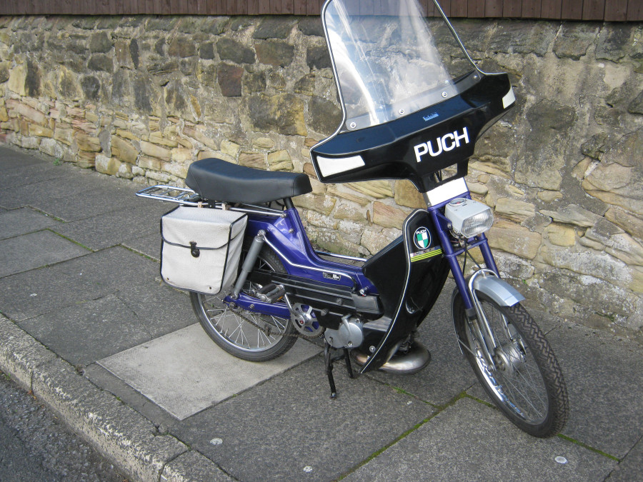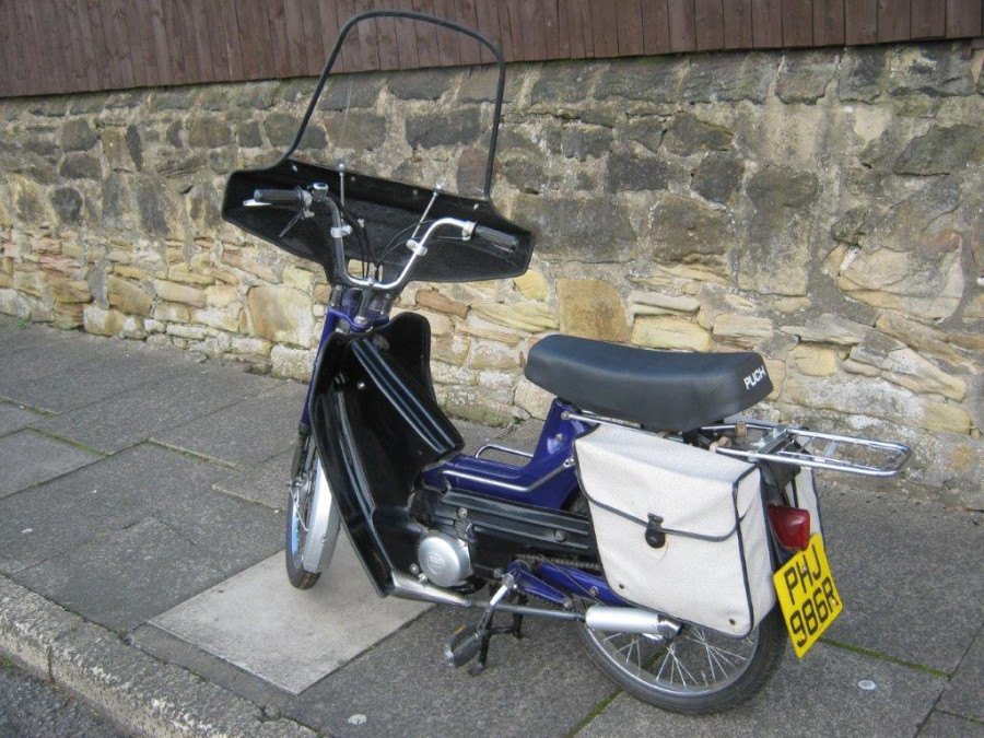 Bought as a standard Maxi, Frame powder coated and brightwirk replaced. 70cc cylinder with circuit exhaust fitted, plus buddy seat and fork brace. Looks fairly standard