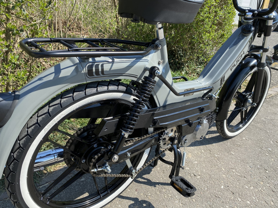 Rahmen, Felgen und alle Anbauteile wurden Sandgestrahlt und Pulverbeschichtet.