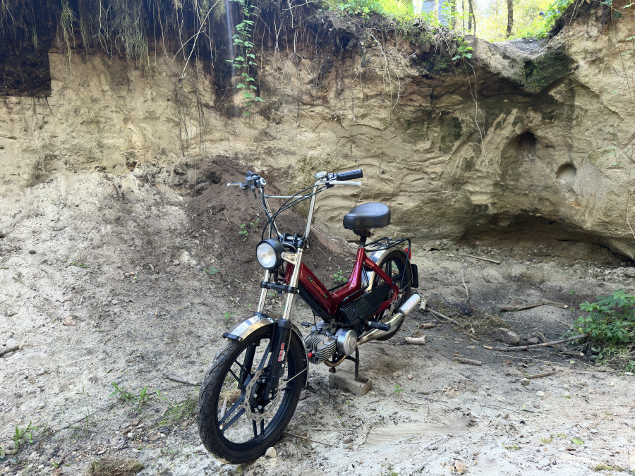 Meine Puch Maxi N aus dem Jahre 1985 mit einem Z50 Kickstartmotor, Fußbremse hinten und Scheibenbremse vorne.
