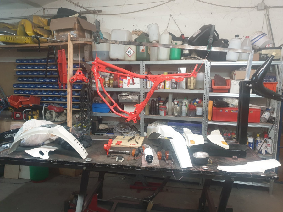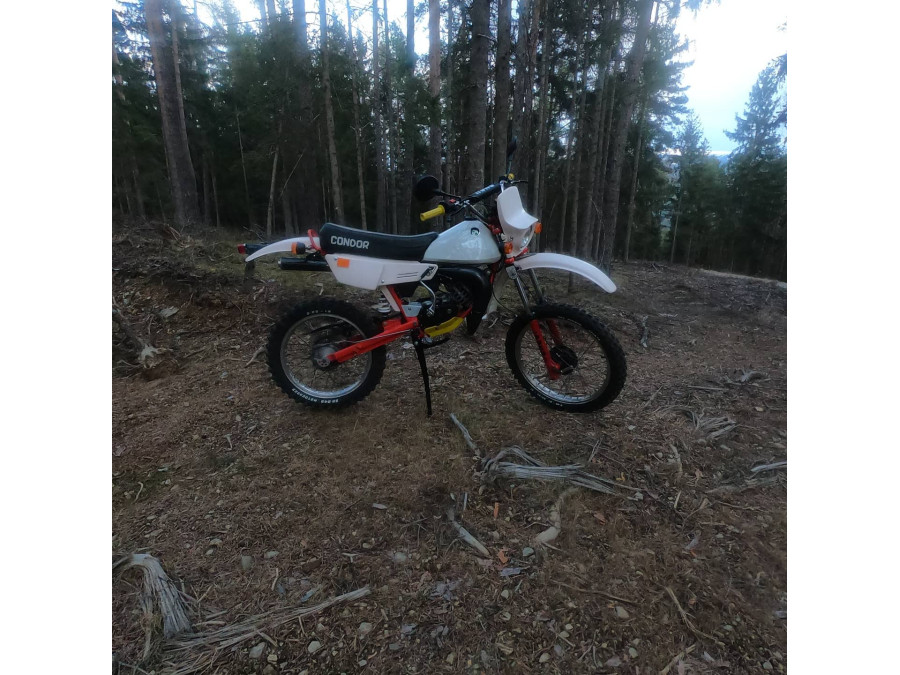 Puch Condor MD85 restauration mit ein paar spezial teilen . Seltener Autisa 74ccm Membran Zylinder mit original Yasuni Puch Auspuff . Fahrwerk 3cm höher als original. Aprilia RC80 Gabel vorne .