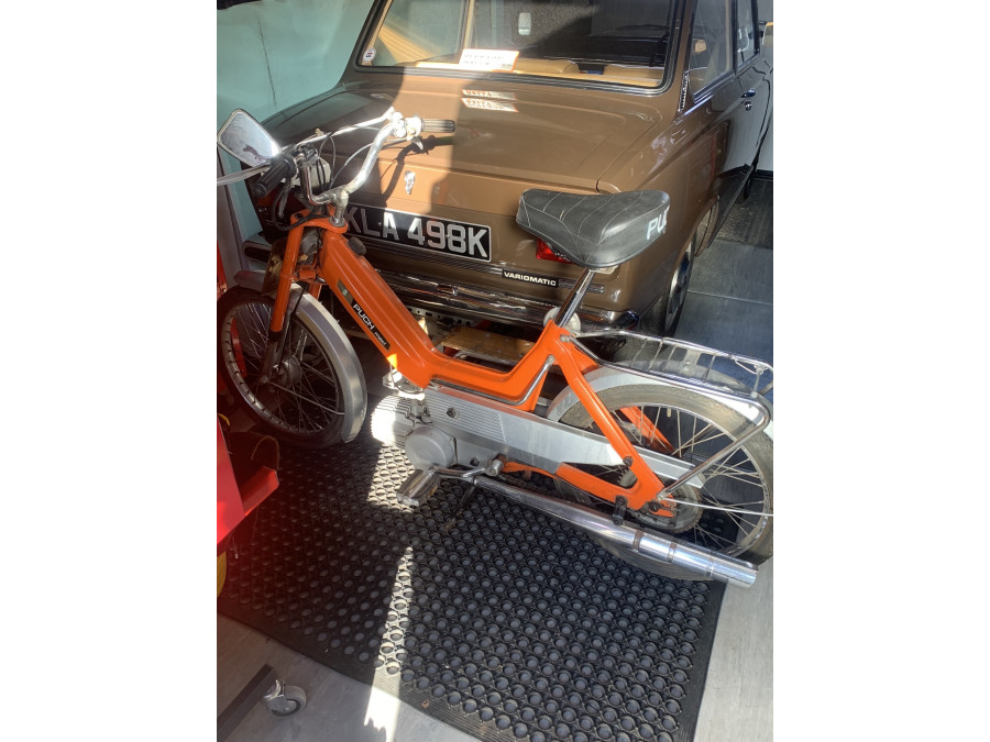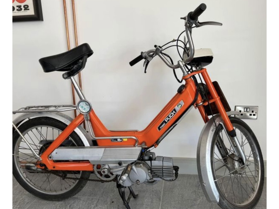 1975 Puch Maxi N in England, great fun but struggles on the hills of the peak district and loves to splash oil onto anything, and always draining my money.