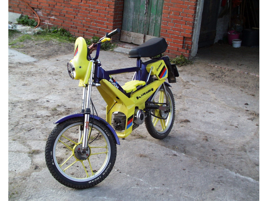 Hoge maxi met ZA50 blok en 65cc,hoge druk kop,19mm delortho. Zit hoogte 85cm. De expansie uitlaat gaat door het midden van het frame en het achter spatbord.Monoshock.