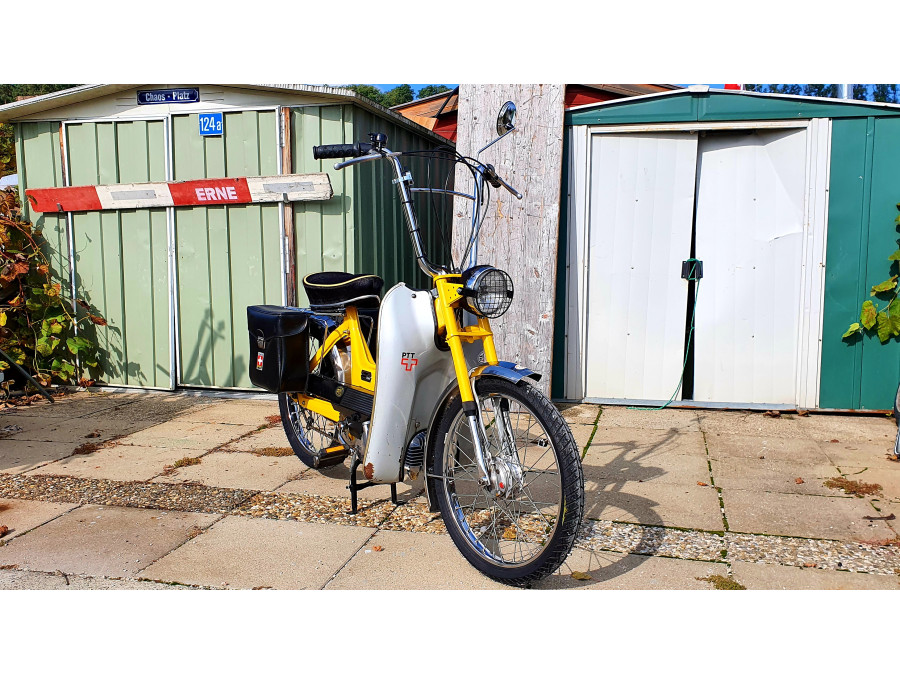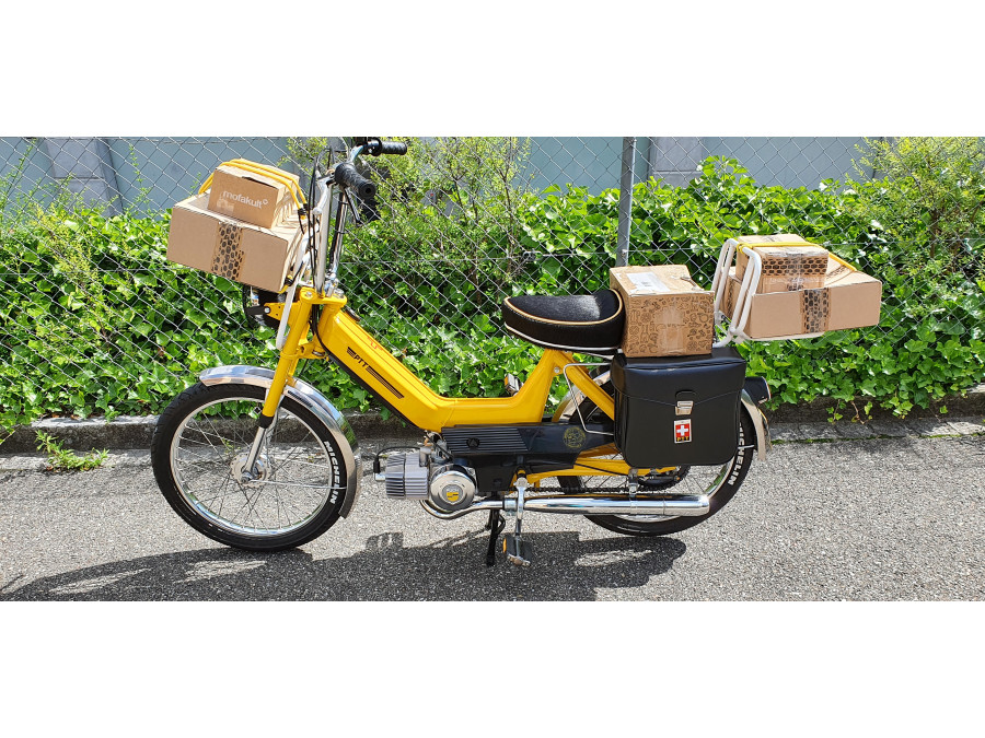 Sattel und Scheinwerfer mit Echt-Kuhfell bezogen(Schweizer Kuh)