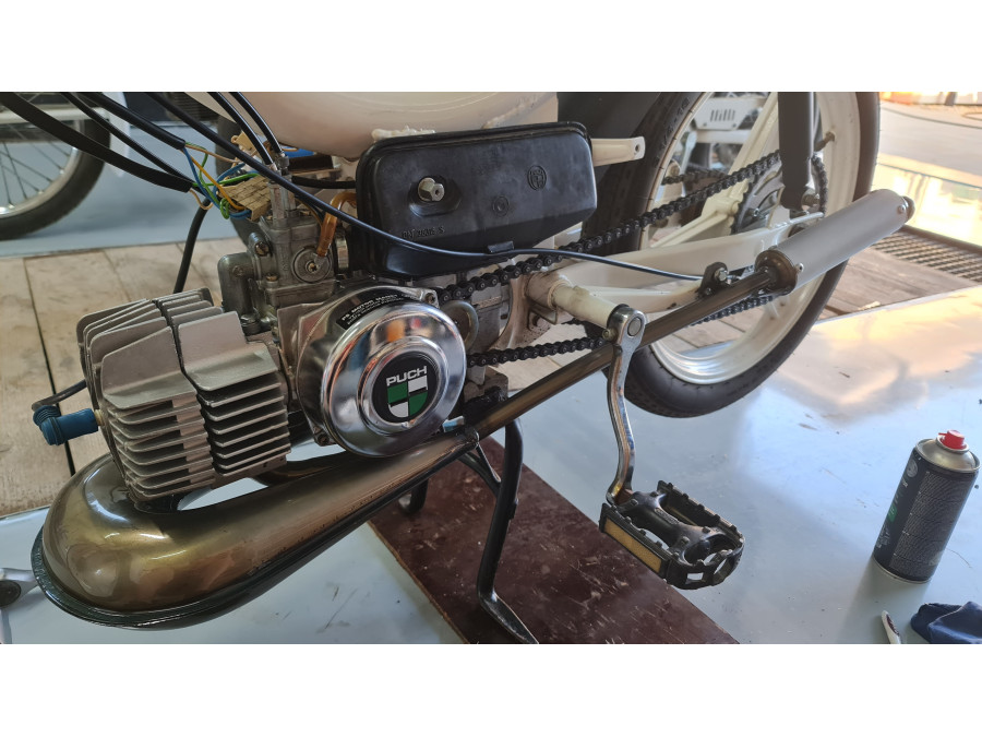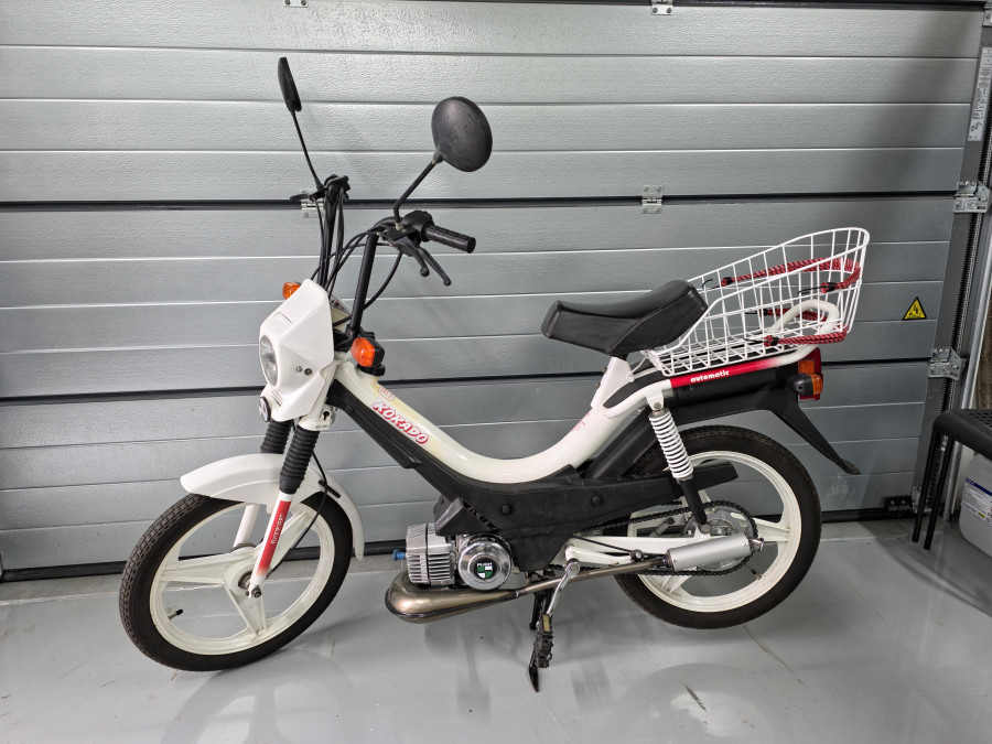 Got it from a relative for free, they wanted to scrap it so I picked it up and started to work on it.Later on I figured out it's one of the first 40 ever made. It was in a really bad shape, but original, the carb was siezed the piston, cylinder and crank were fused together with rust but managed to replace it all, only for me to get my hands on a 70cc kit which I had put on. Later I installed blinkers and a brake light for safety reasons.