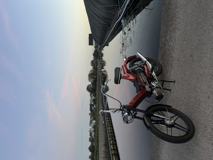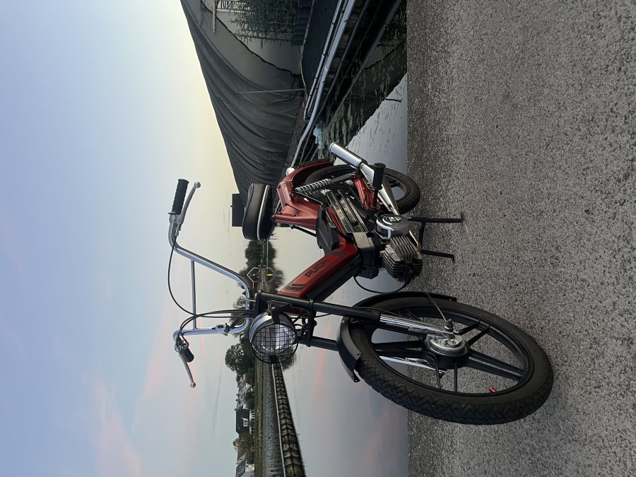 Zelf omgebouwde Puch maxi P1 naar een Puch maxi S. Zelf frame en spatborden gespoten. Alle onderdelen gekocht bij puchshop! Alles is origineel behalve de carburateur.nieuw Blok is een gereviseerd aanloop blok, oud blok was kickstarter.