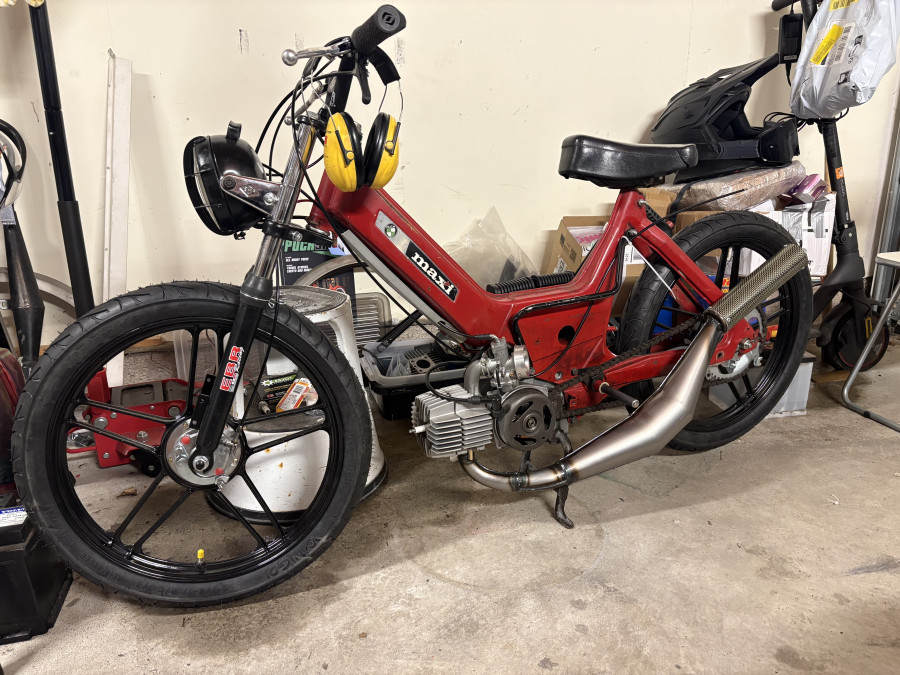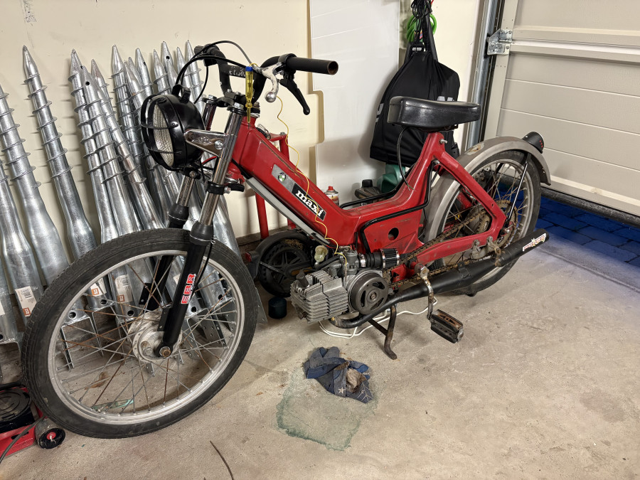 My son hoped to quickfix it and drive it as his first moped, turns out that everything was shiiiiet. So now it’s an ongoing project currently with 70cc DMP OM for classic look and 21mm CP carb, worked really well until the org backwheel broke. Plans for upgrading motor with 74cc, mvt dd, big carb and pipe.