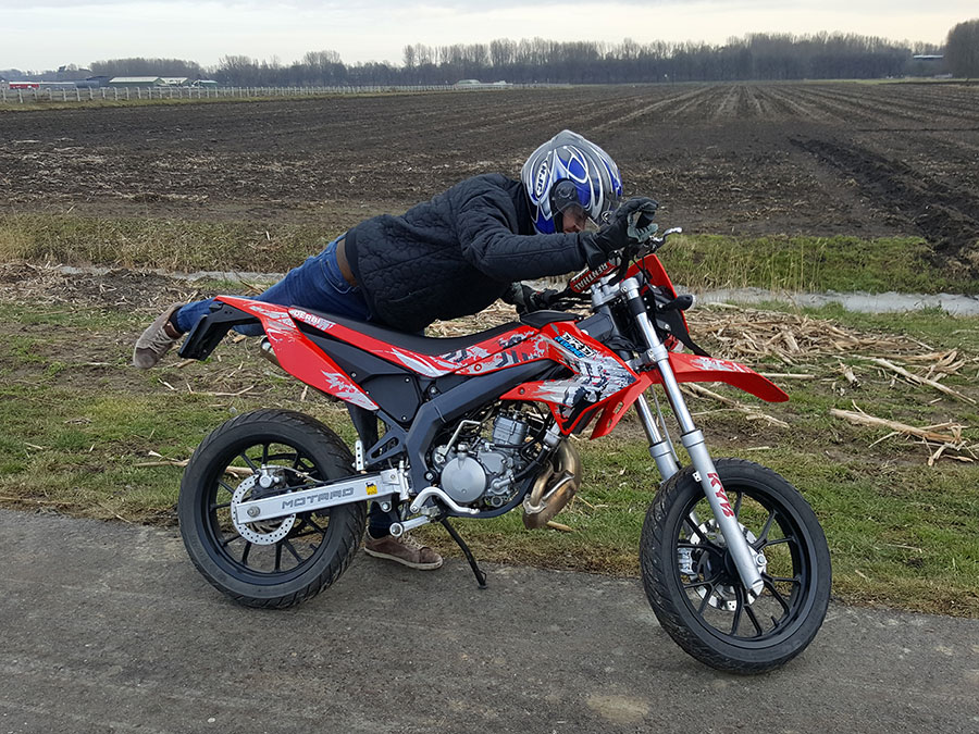 Hier ziet u een derbi. Deze derbi is standaard maar zal het de meeste scootertjes warm laten krijgen. Dat komt omdat het simpel weg gewoon zo is ookal is hij 90% standaard. De 10% is dat hij ontgrensd is. MAAR na de 4de versnellingen is het net als of je op een scooter rijd want je hebt dan heeeel weinig kracht maarja daar heb je de 70cc eventueel 94c voor.