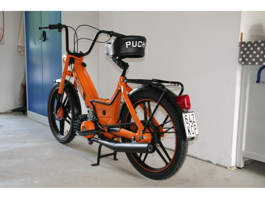 Die Puch wurde gestrahlt, Tank entrostet und versiegelt, neu lackiert, Aufkleber unter Klarlack gelegt.