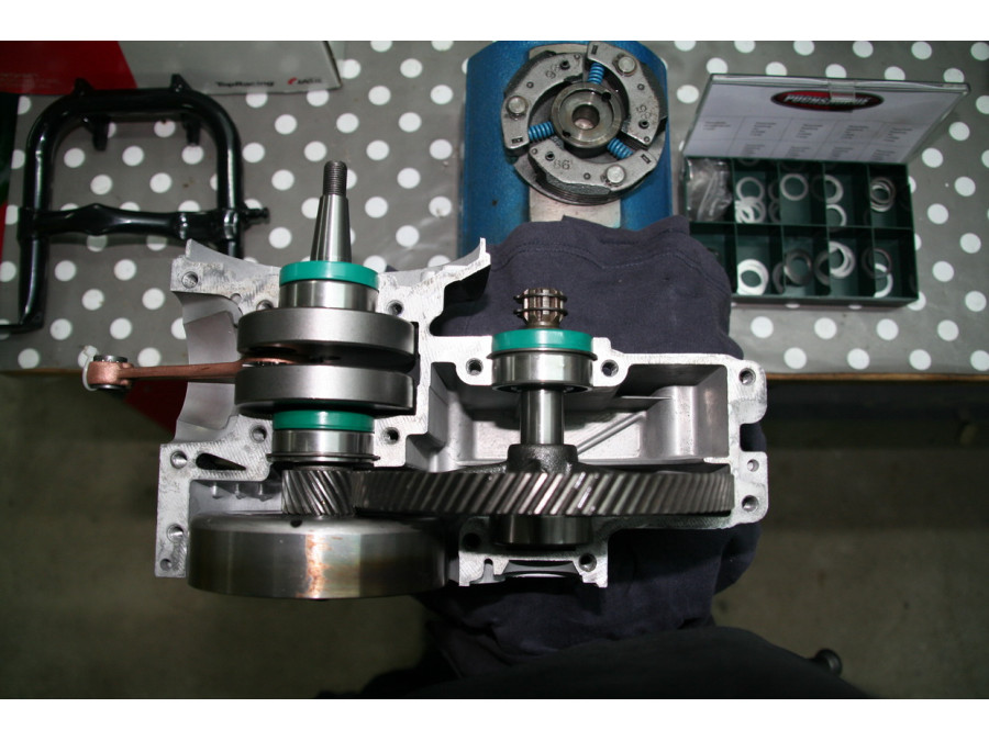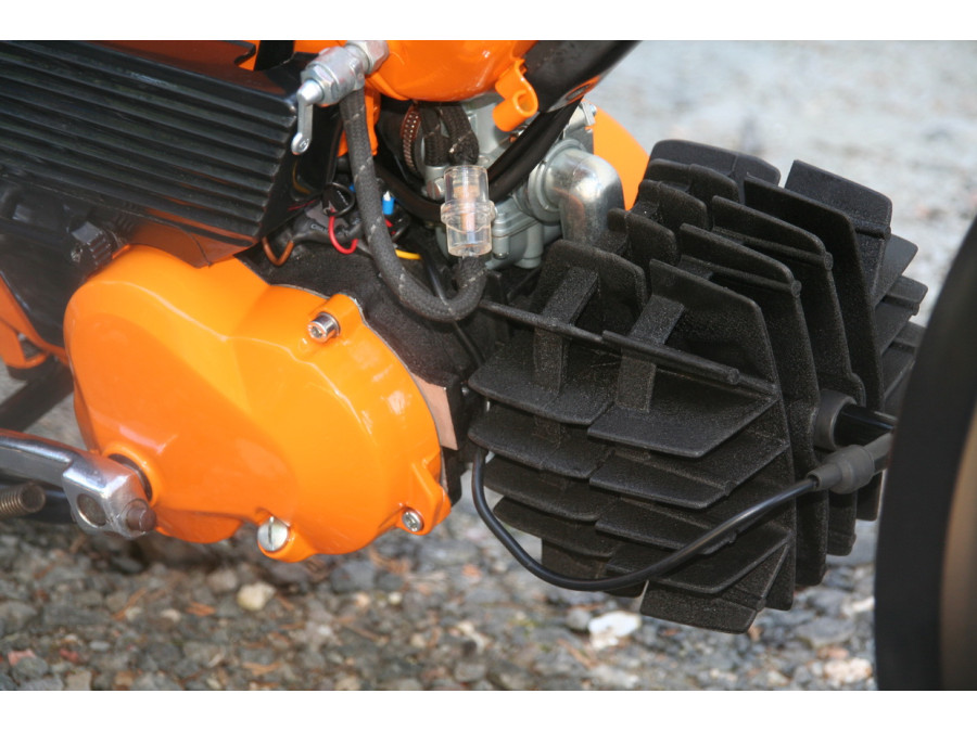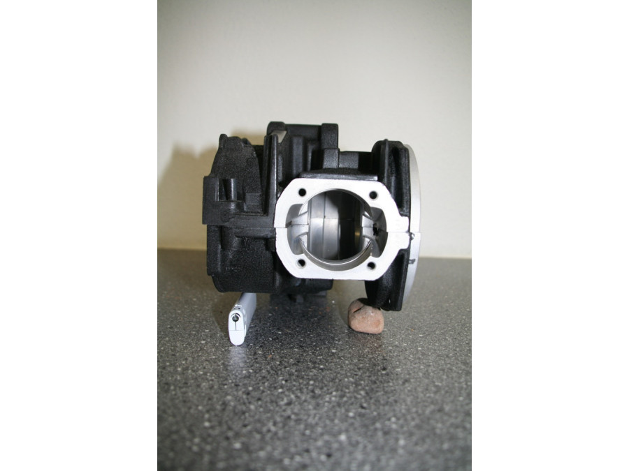 Motorgehäuse wurde auf einer CNC Fräse ausgespindelt, Motor ist mit den großen Überströmer ausgestattet, denke Austria-Version, Motorgehäuse und Zylindersatz wurde Glasperlen gestrahlt und mit Harley Daividson Motorlack lackiert.