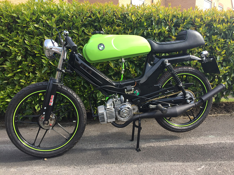 Just built. Engine case matched to cylinder. Needs a little tweaking to set the carburettor right, plus the wiring needs tidying up, as it was connected temporarily to check it works. I should be getting some miles on it the next few months