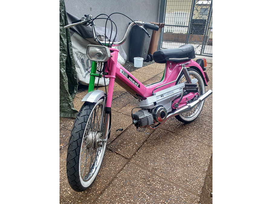 From a scratched green frame to a profesionally painted reliable all day runner. Selfmade lowered seatmount for a L2 seat and whitewall tires to make it look even more unique