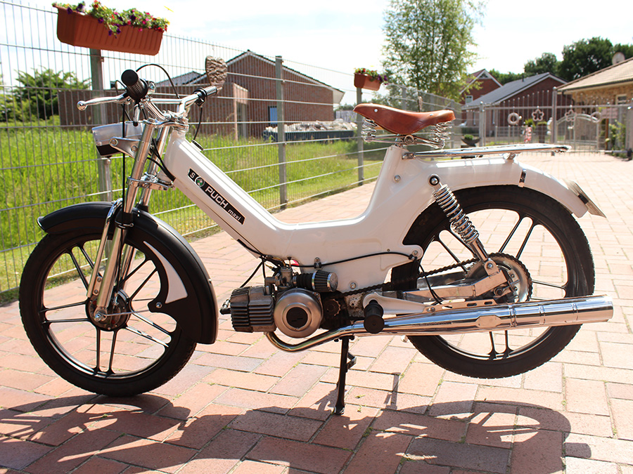 Das ist unsere Puch Maxi S in verkehrsweiß.