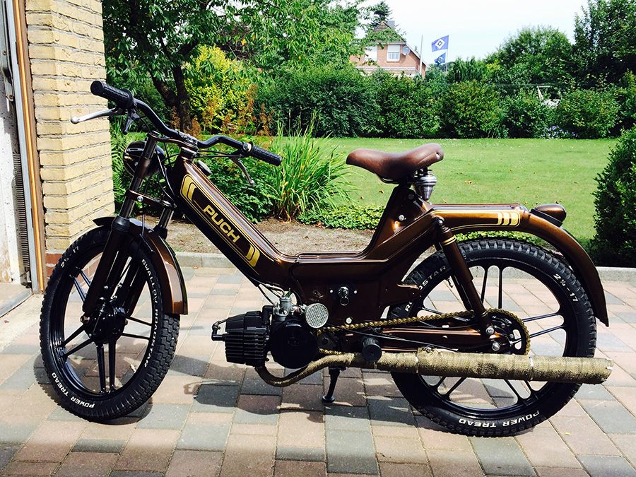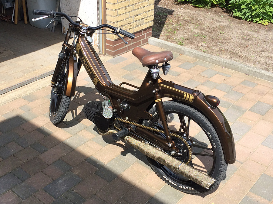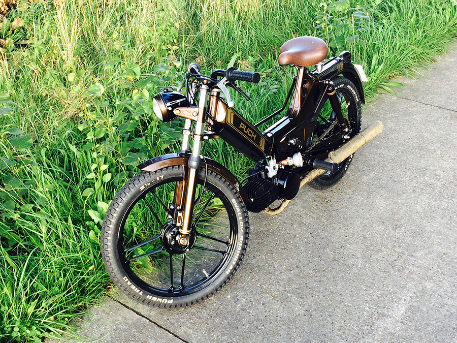 Neu aufgebaute Maxi S , lackiert in BMW09 (Marrakesch braun). Lampe und Rücklicht von einem 30er Jahre Fahrrad.