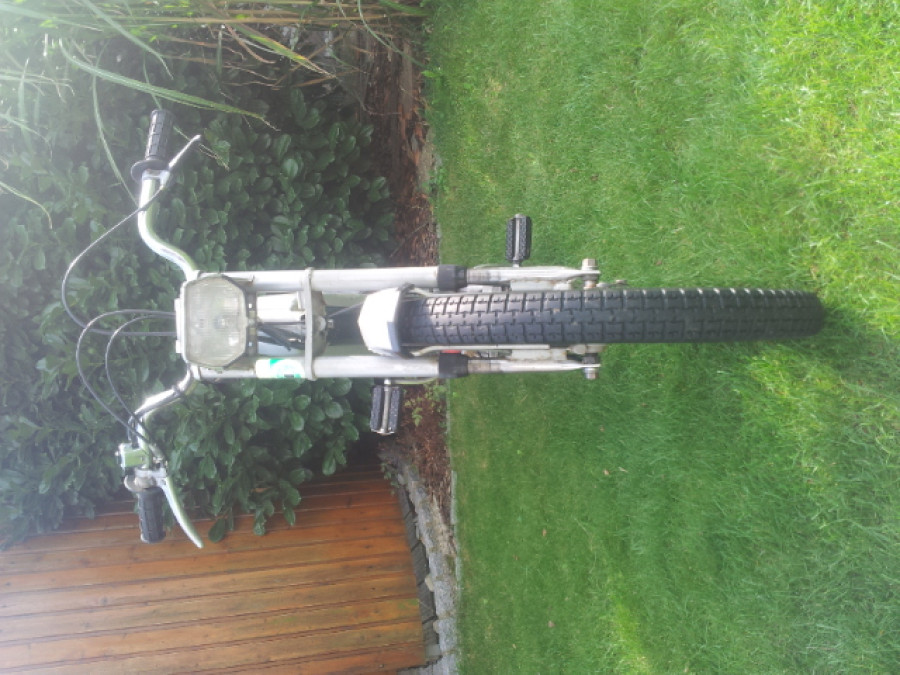 Niedriger Lenker, original 22mm Auspuff, original Zündung mit erleichtertem Pollrad, schräger Ansaugstutzen mit original Bing 14mm Vergaser.