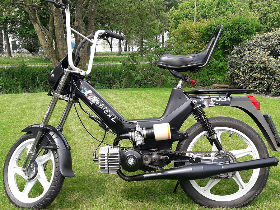 Uitlaat Puch Maxi / E50 28mm Homoet P8 zwart 74cc schuine uitlaatpoort (vernieuwd)